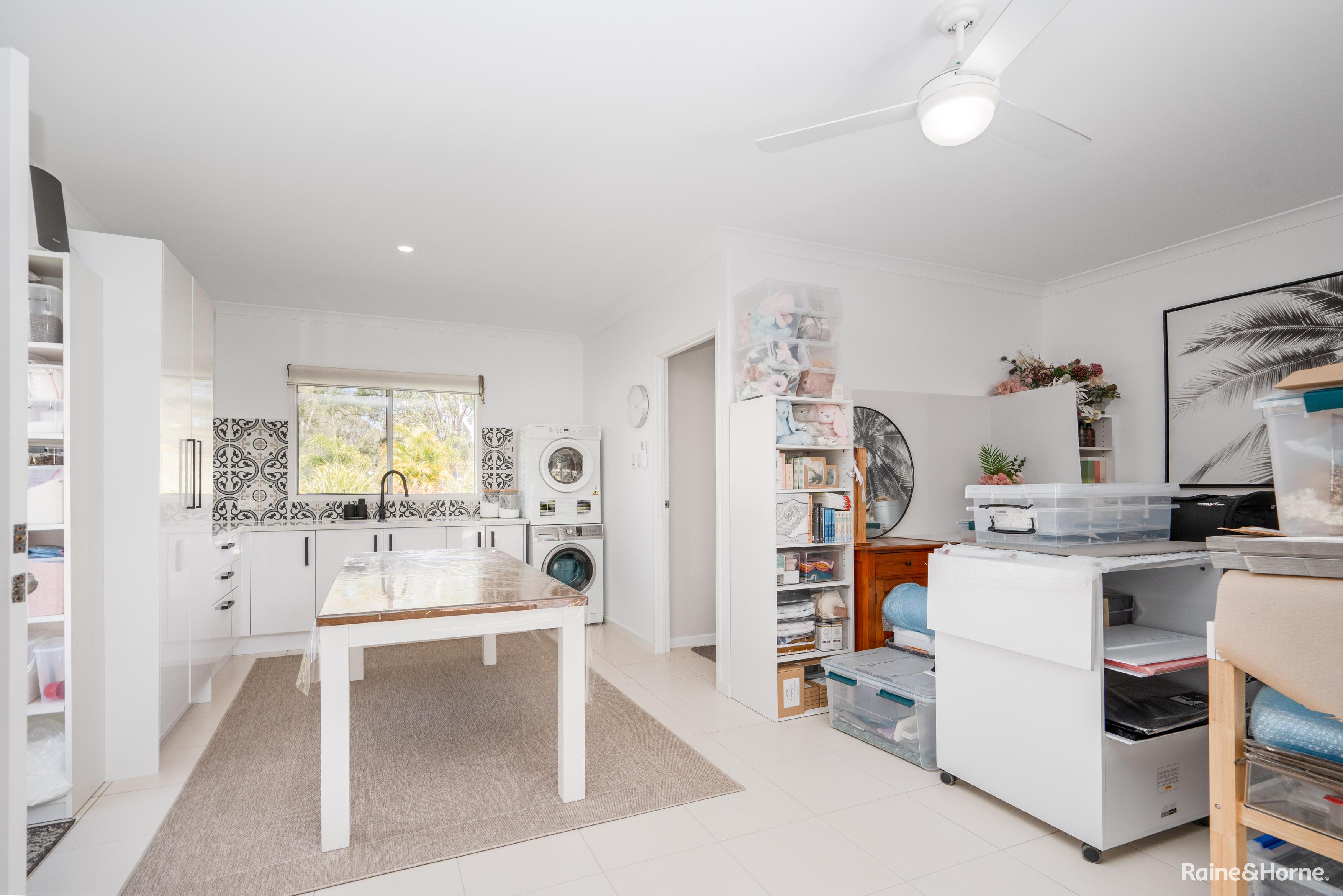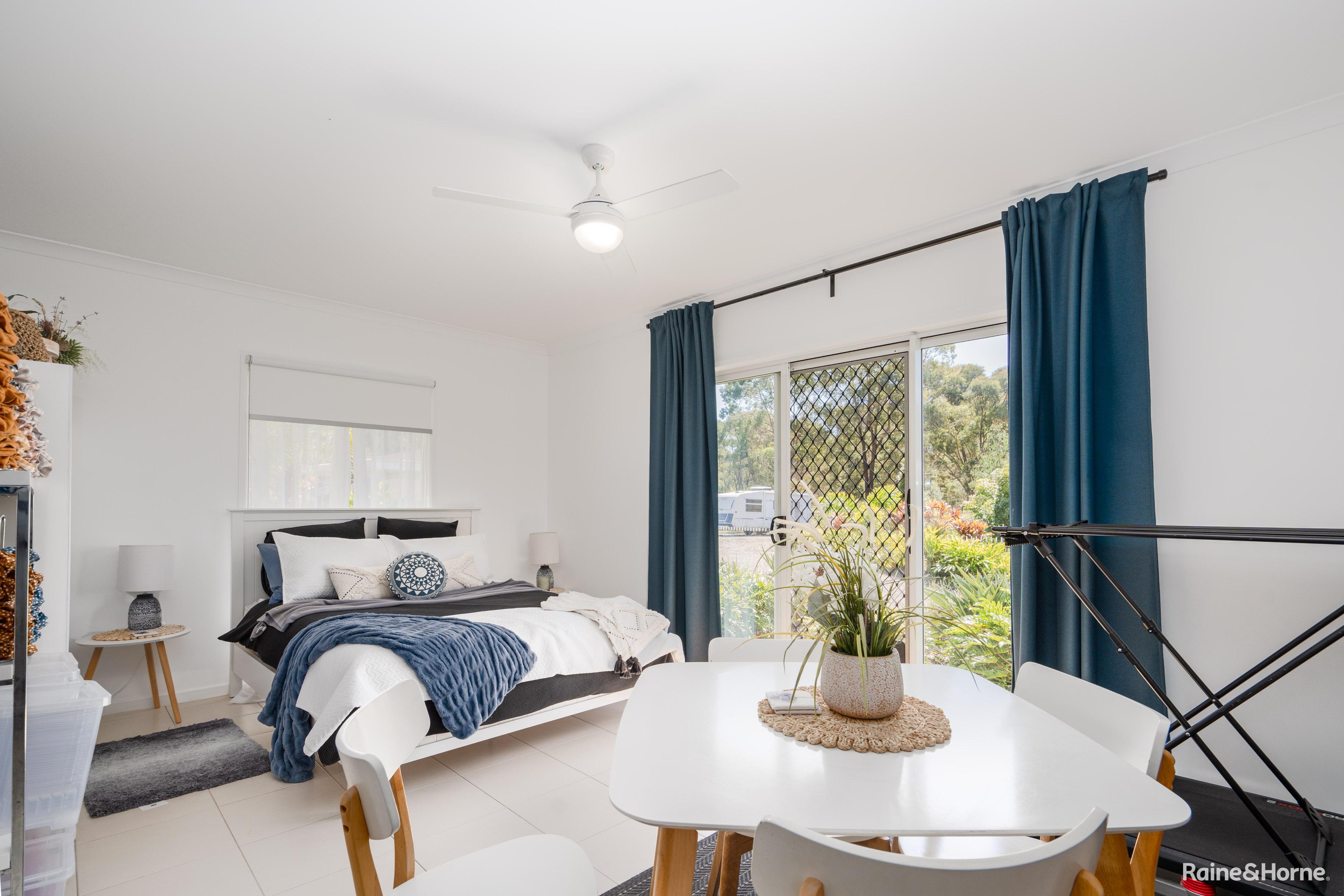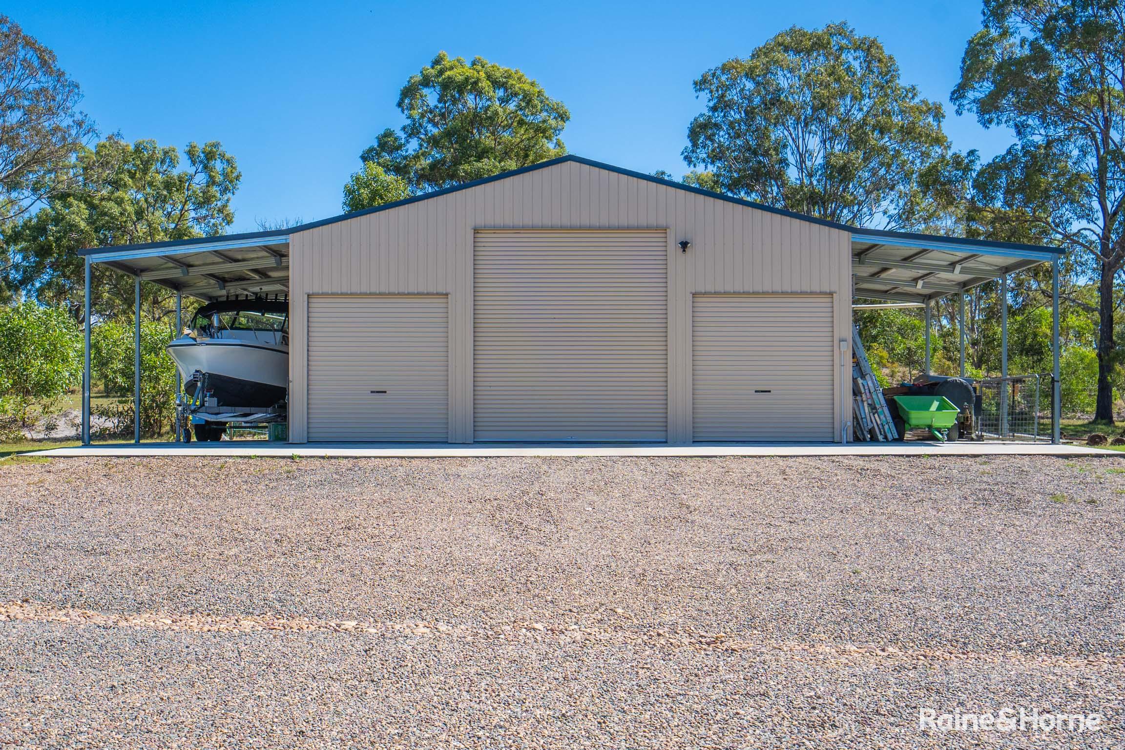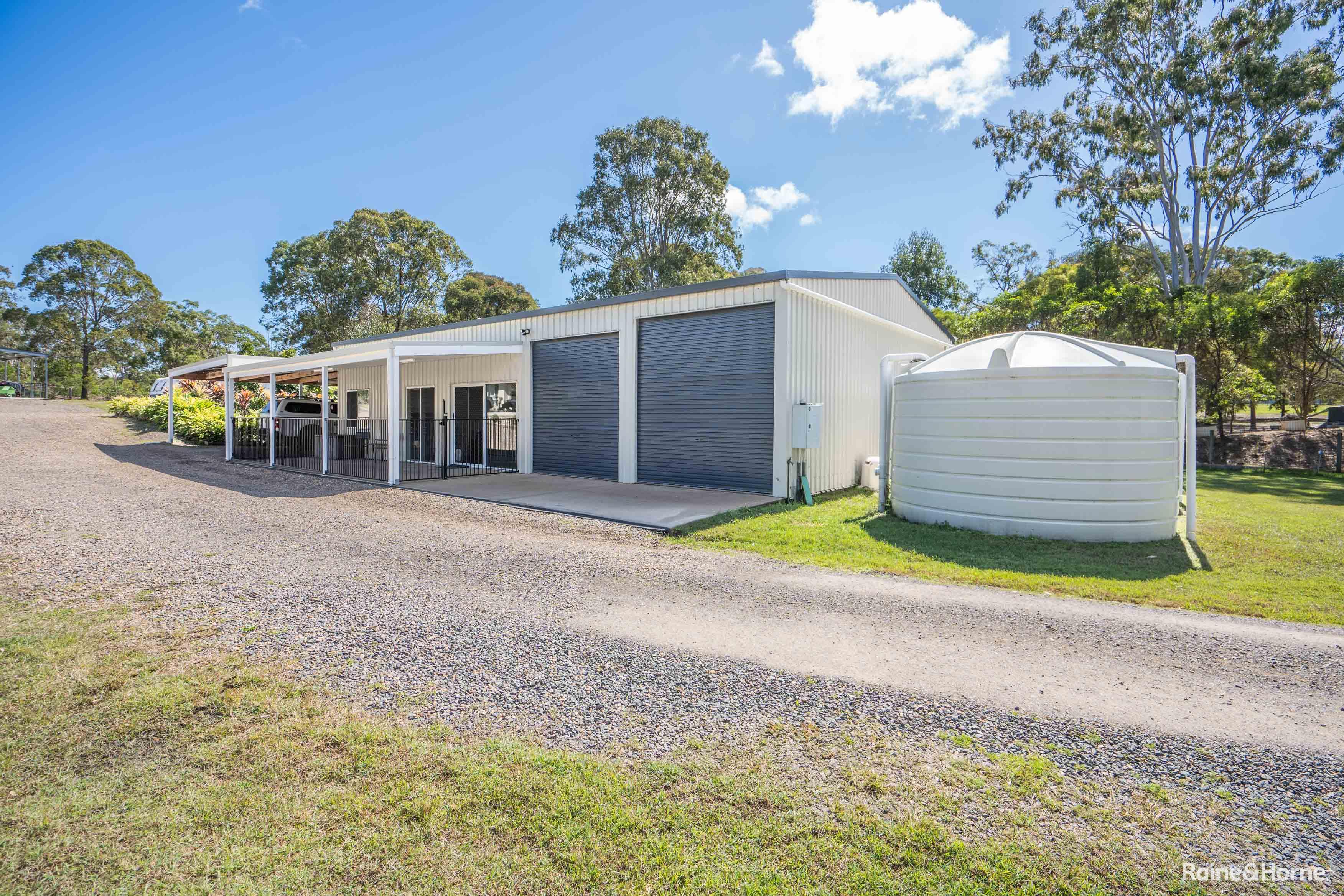 Additionally, a three-bay barn-style shed with a 3.6m clearance is ideal for a van or horse float. The acreage features a separate paddock suitable for horses, with water supplied by three 5000-gallon tanks, one 3000-gallon tank, and a dam with a pump. State-of-the-art sand-filtered septic systems serve both the main house and the studio unit.