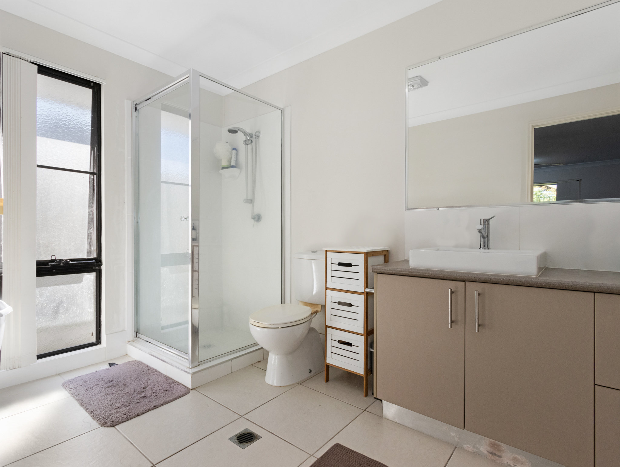 - Large open plan living and dining with air-conditioning - Common bathroom with double vanity, separate shower and bath - Underroof alfresco area