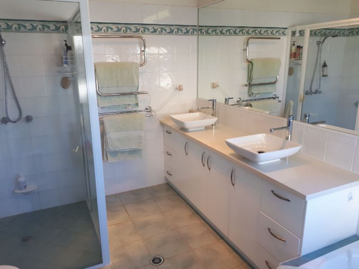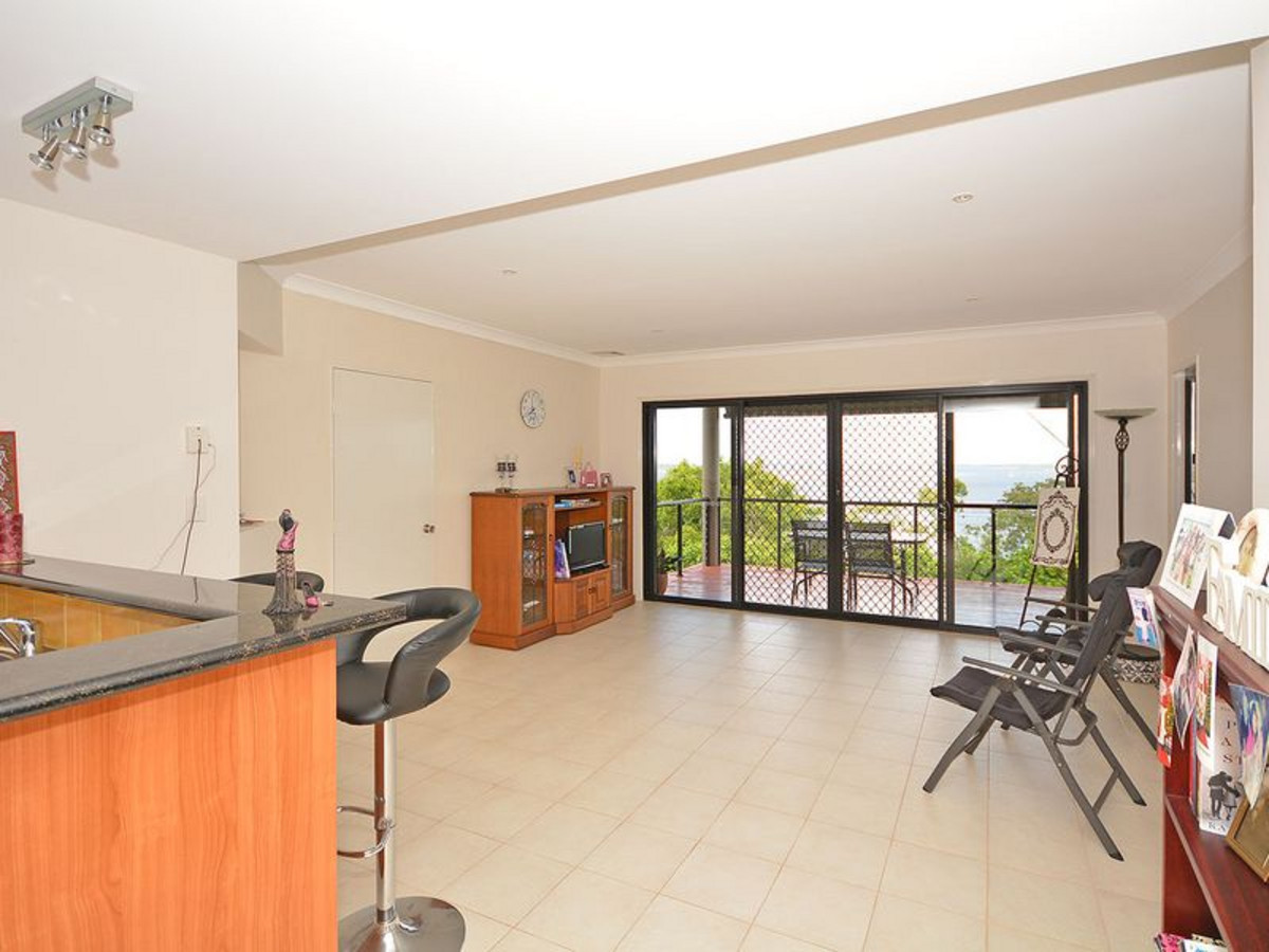 All of this opens onto an 'L' shaped deck that is an entertainer's delight. Sit quietly and admire the sunset or invite your friends over to marvel at the superb views. The main bedroom which has its own deck, also has walk-through robe and large ensuite with corner bath.