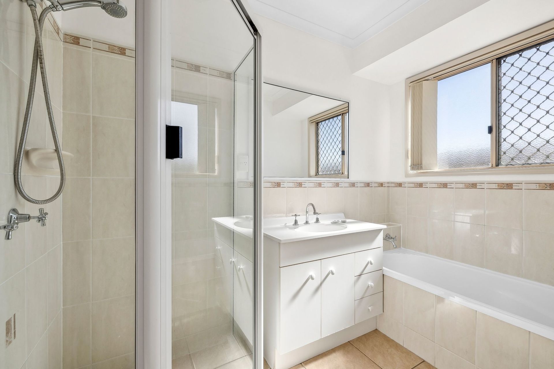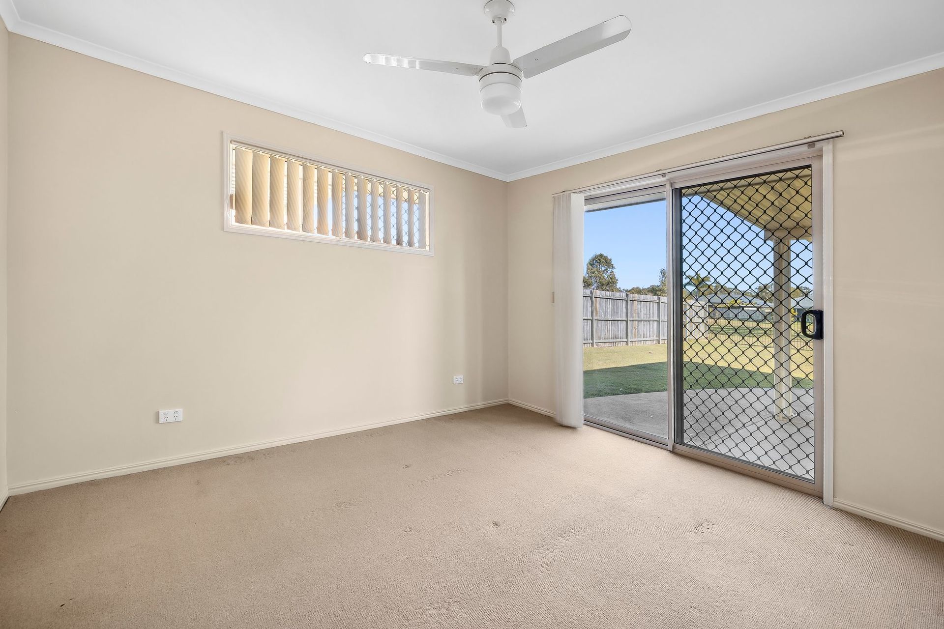 Three Bedrooms. Two Bathrooms. Internal Laundry. Each of the three large bedrooms features built-in robes and ceiling fans. The master bedroom boasts a separate walk-in robe, sliding door access to the patio, and an ensuite with a large shower, vanity, and toilet.