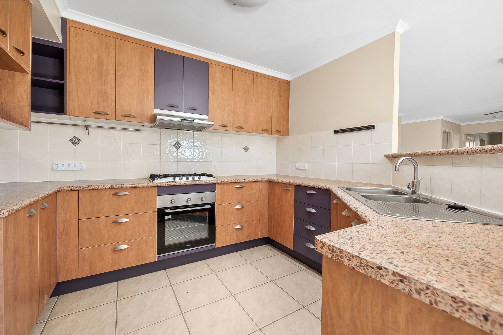 Cooking is a delight in the spacious, contemporary galley-style kitchen, equipped with quality appliances, ample base and overhead cabinetry, generous bench space, and a breakfast bar.