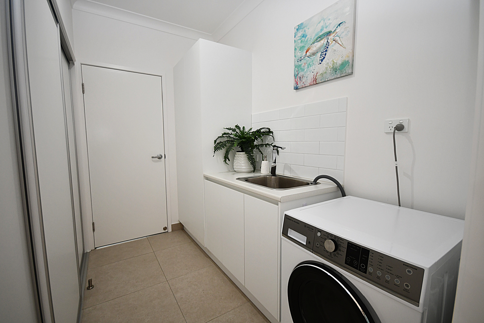 Laundry with large linen closet *