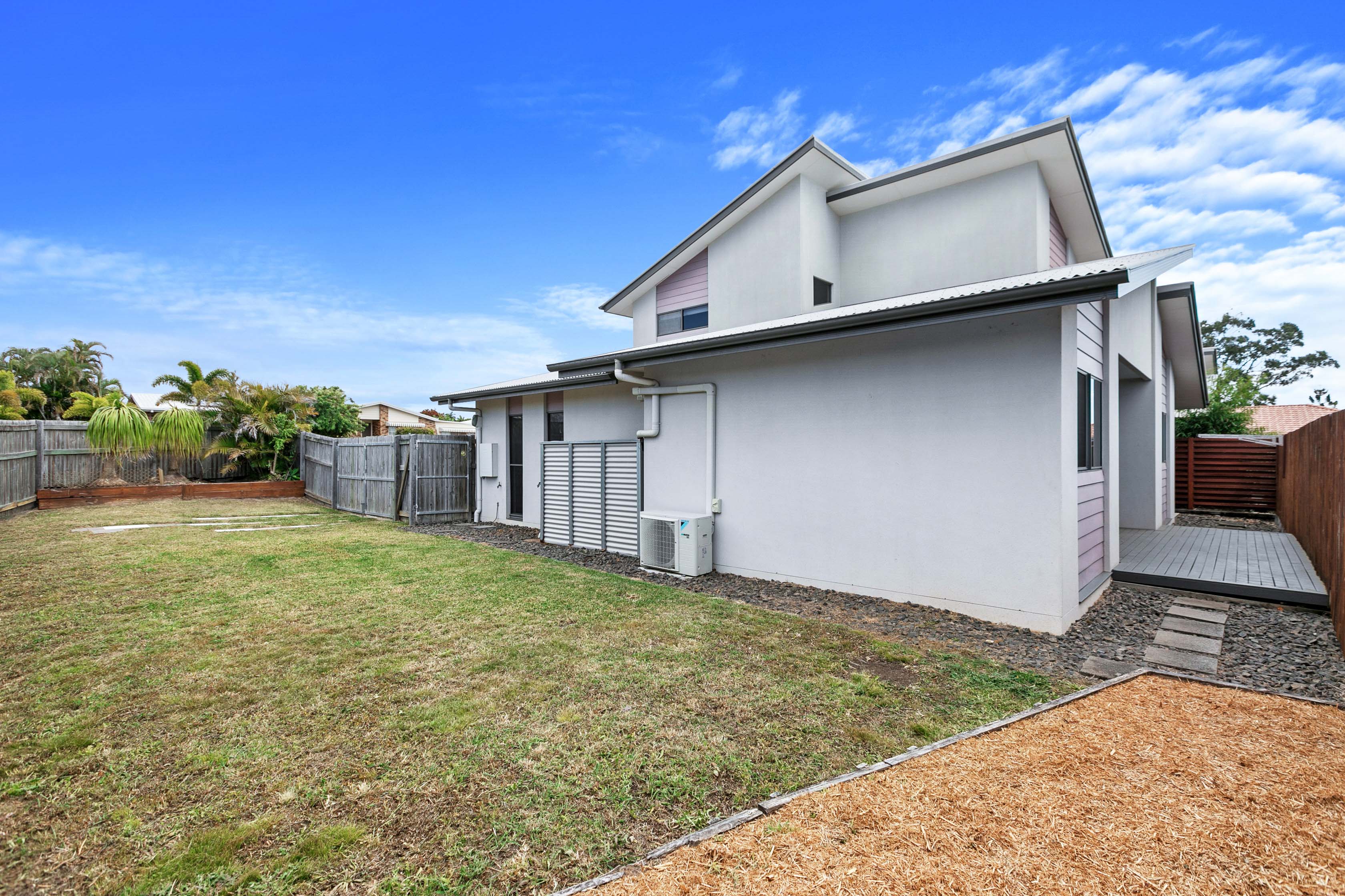 Timber feature staircase Downstairs master bedroom with walk in wardrobe, air-conditioner, ensuite with dual vanity basins and direct external access to private patio area Second toilet downstairs with vanity area Full internal laundry with direct external access Double attached garage with automatic lift door, direct internal access and built in storage Three additional bedrooms located upstairs, all with ceiling fans and built-in wardrobes - north facing room also features air-conditioning and a private balconette Upstairs bathroom with separate toilet Generous yard with side access, ideal for caravans and boat storage Ample storage throughout home including large under-stair storage Elevated location in a prime suburb, within proximity to major shopping centre, hospitals & medical precinct Solar hot water Very affordable body corporate fees of $1,800 per annum which covers strata title insurance for each unit plus yearly pest inspection Only shared common wall between the duplexes is the garage