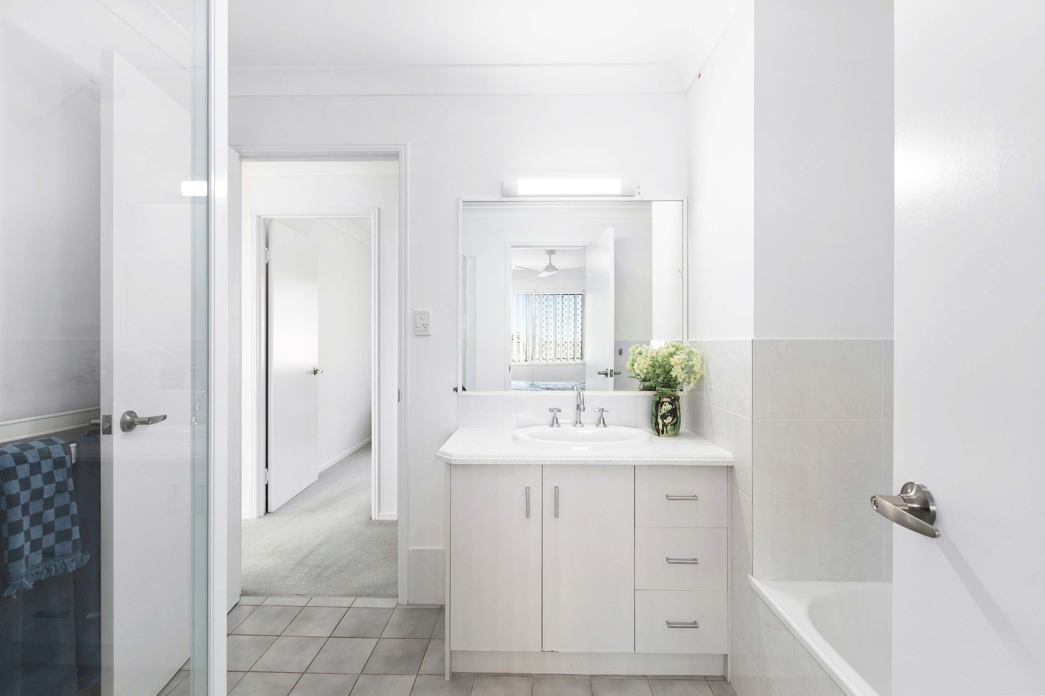 Features include: • Brick and tile townhouse built in approx. 1997 with private courtyard • Spacious living room with ceiling fan and window seat • Open plan dining and kitchen, adjoining courtyard • Tidy kitchen with breakfast bar and electric free-standing oven • Downstairs toilet • Internal laundry adjoining garage • Second living space upstairs with ceiling fan and balcony access • Master bedroom with ceiling fan, built in wardrobe and direct access to two way bathroom • Upstairs two way bathroom with separate toilet • Two additional bedrooms, both with built in wardrobes • Single attached lock up garage • Private fenced courtyard • End townhouse with only one adjoining neighbour