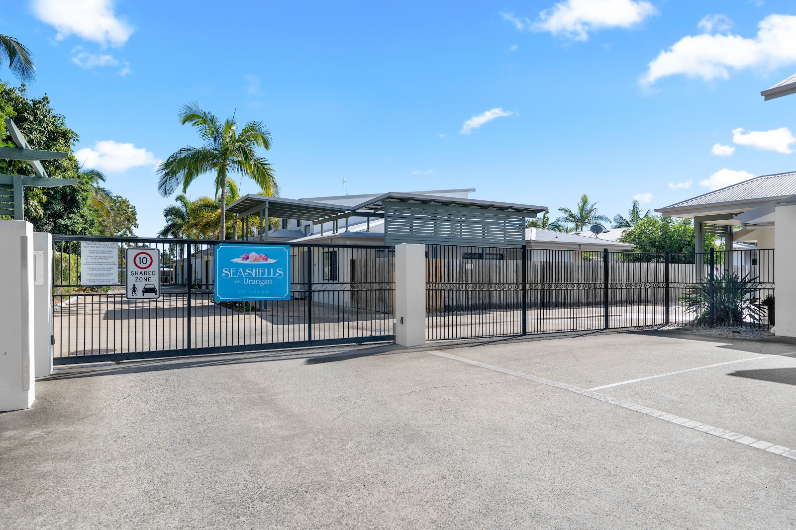 Completed in 2006, Seashells on Urangan is a secure gated community comprising 28 three-bedroom, 2-bathroom apartments, each featuring a private courtyard of varying dimensions. The buildings are meticulously maintained to a high standard.