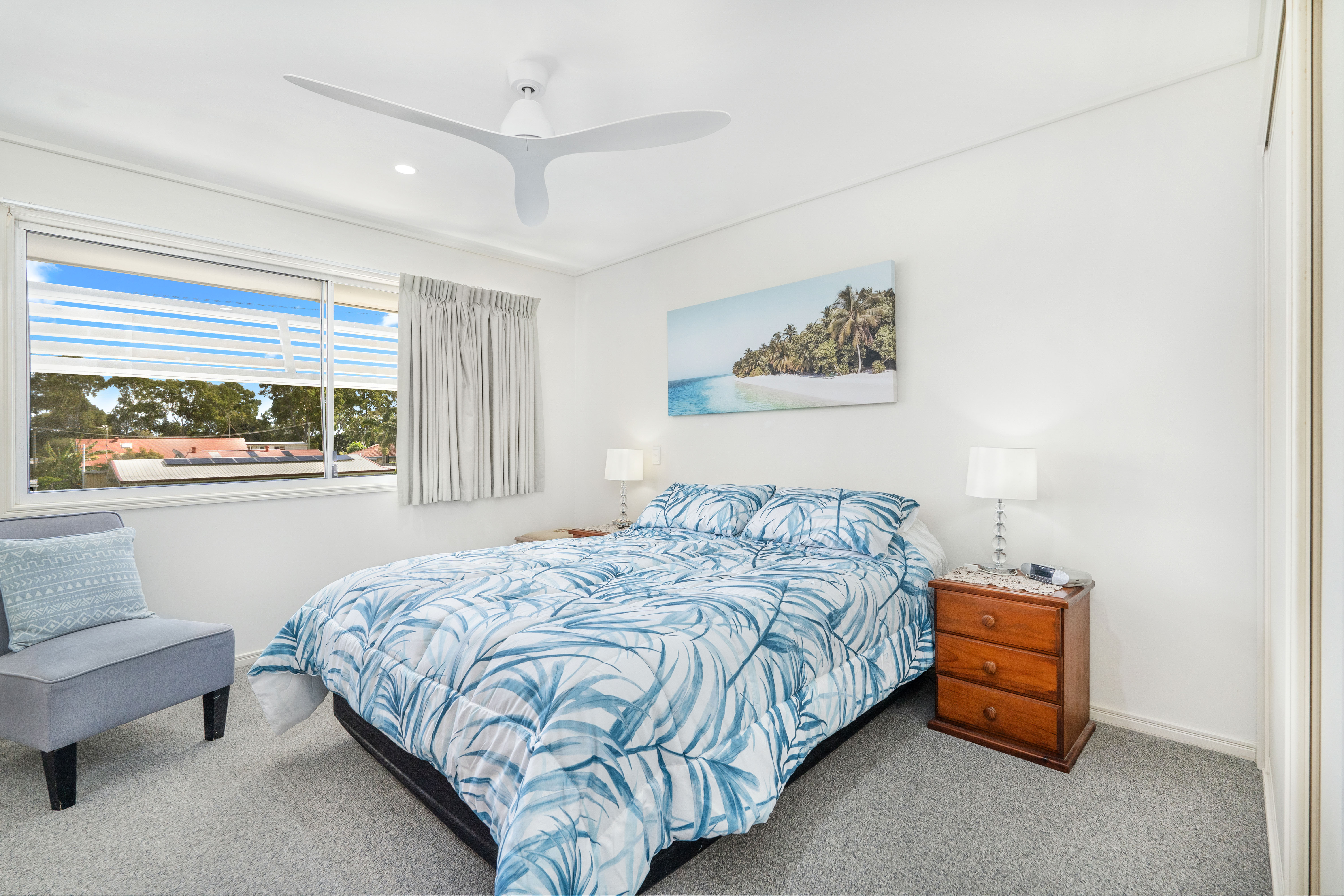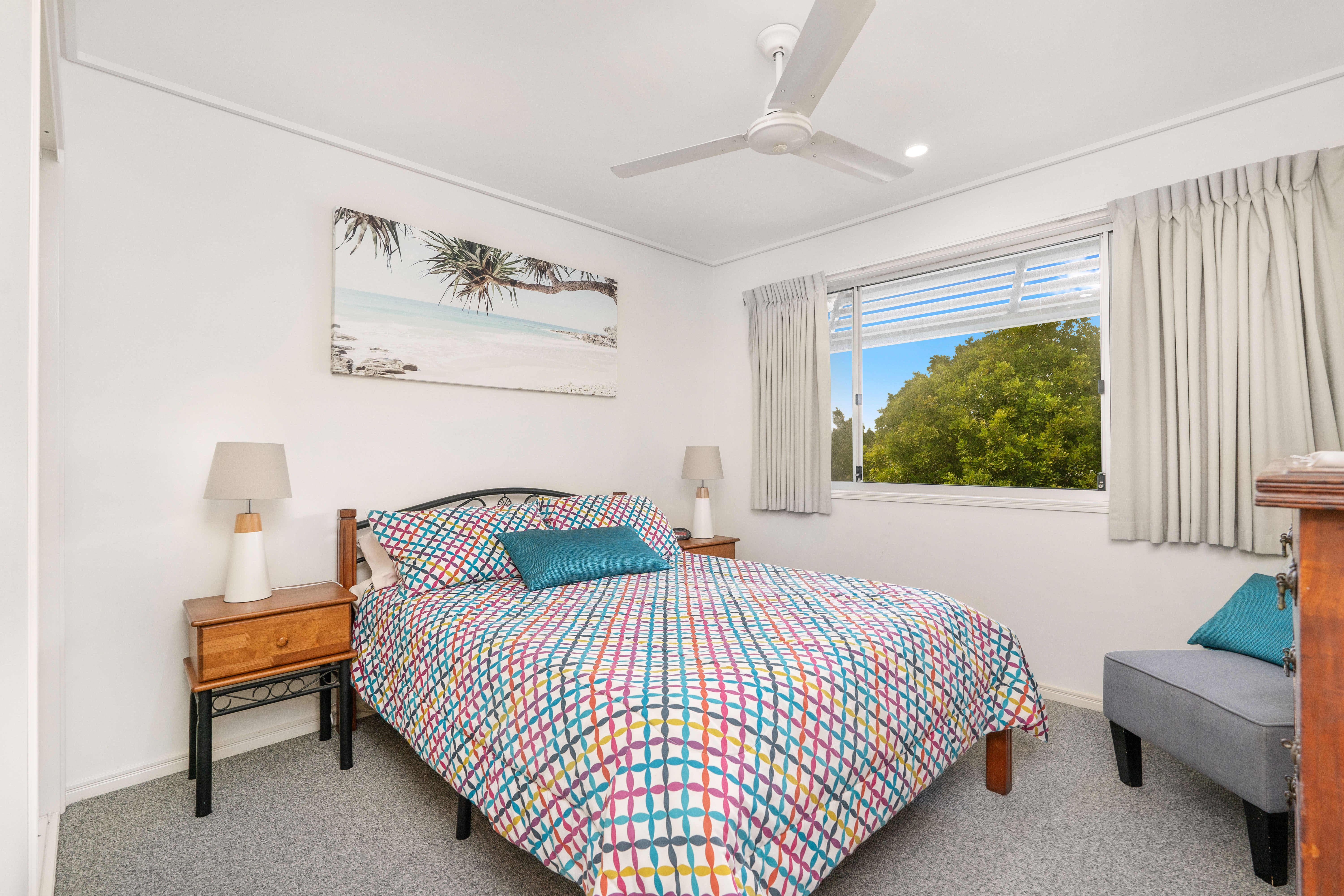Features: - Three large bedrooms with ceiling fans - Main bathroom includes both shower and bath - Open plan lounge and dining